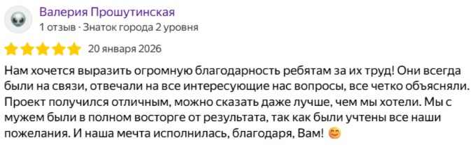 Благодаря авторскому надзору после выполнения проекта мы гарантируем, что реализованный проект будет в точности соответствовать плану.